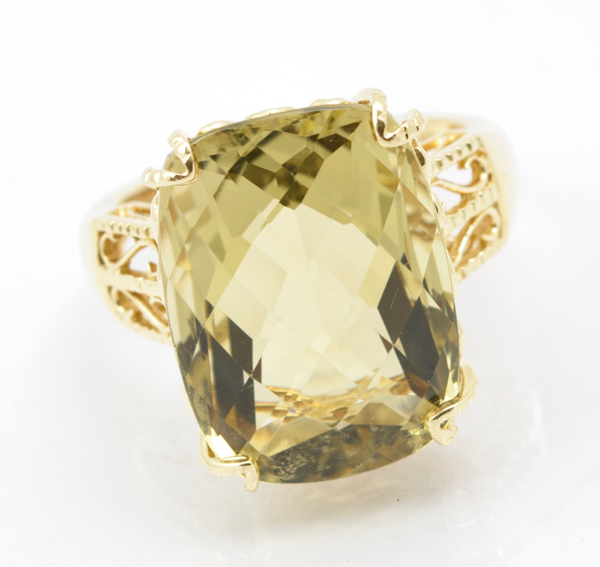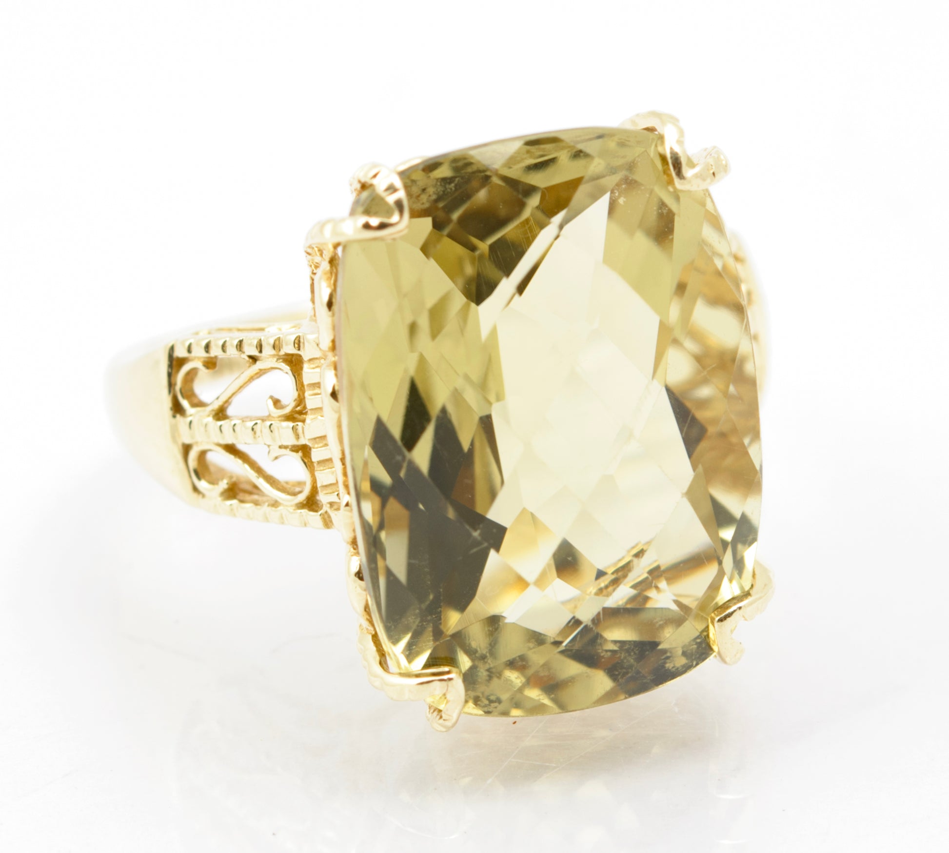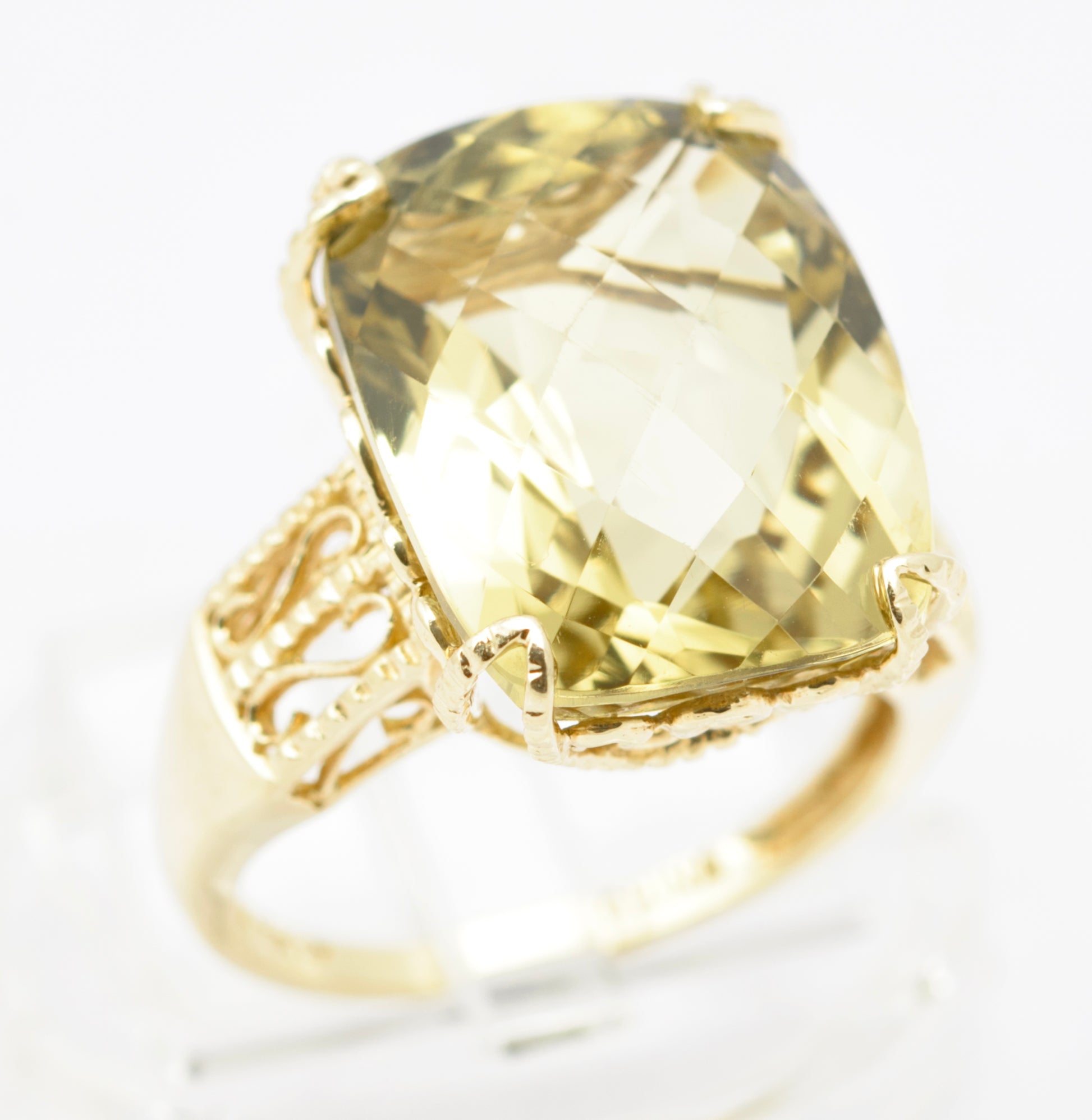 10K Yellow Gold Statement Ring With Large 15 Carat Citrine & Filigree Mount Sz M (B2547)