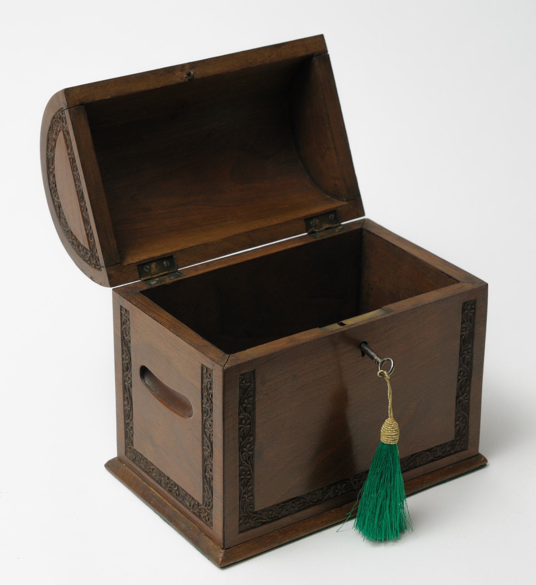 Antique Anglo Indian Carved Teak Dome Top Box Casket & Working Lock (Code 1177)
