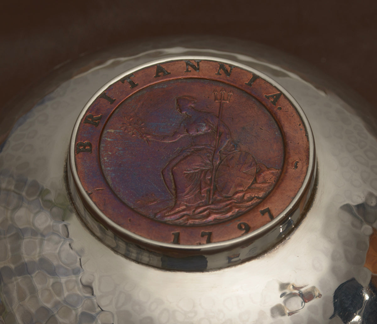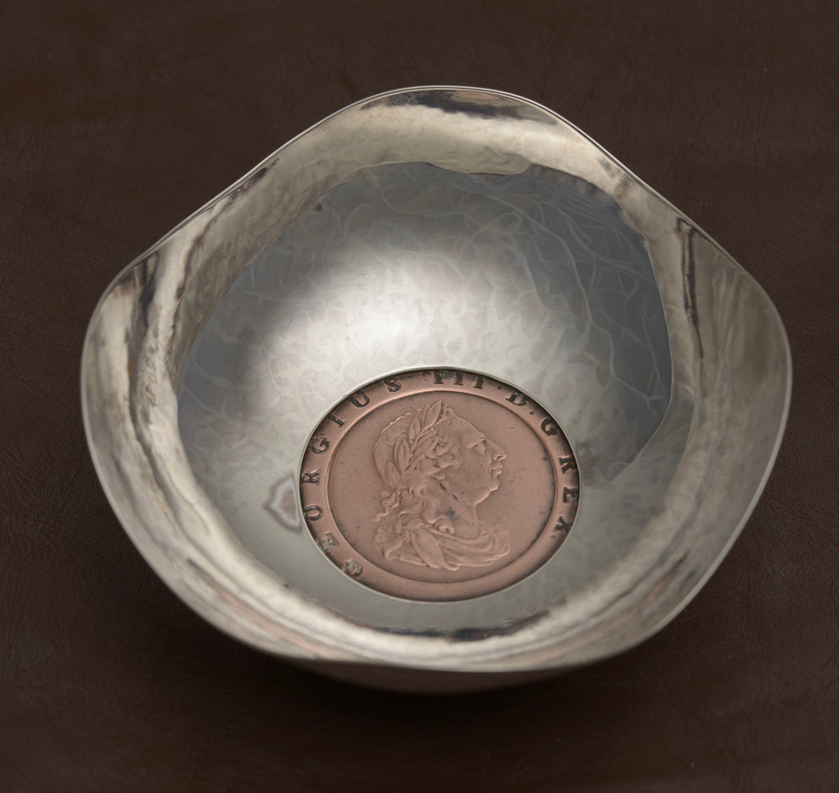 Antique Art Deco Sterling Silver Planished Dish & George III Cartwheel Penny (B2501)