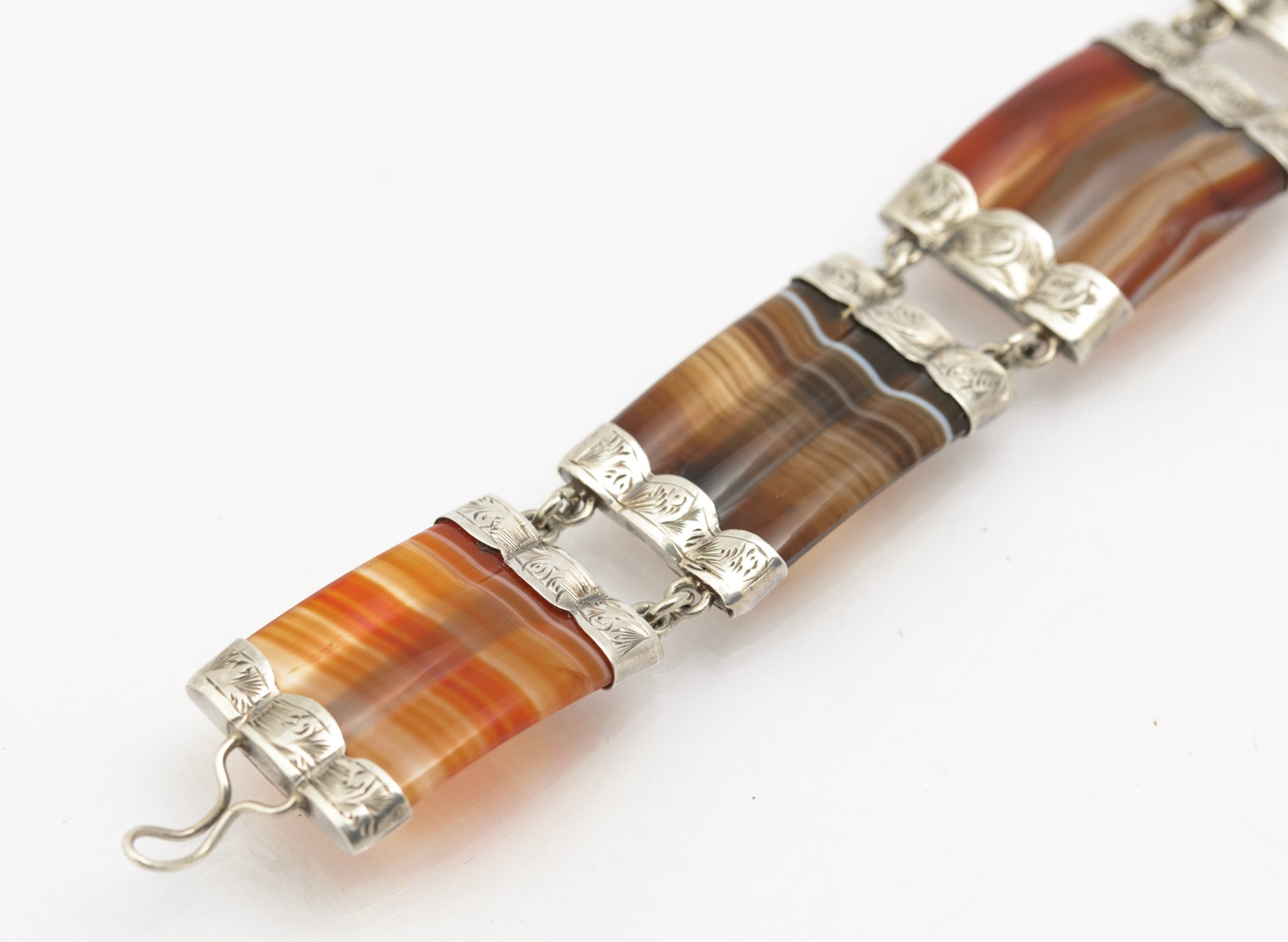 Antique Scottish Sterling Silver & Agate Bracelet With Decorative Clasp c.1870 (B2621)