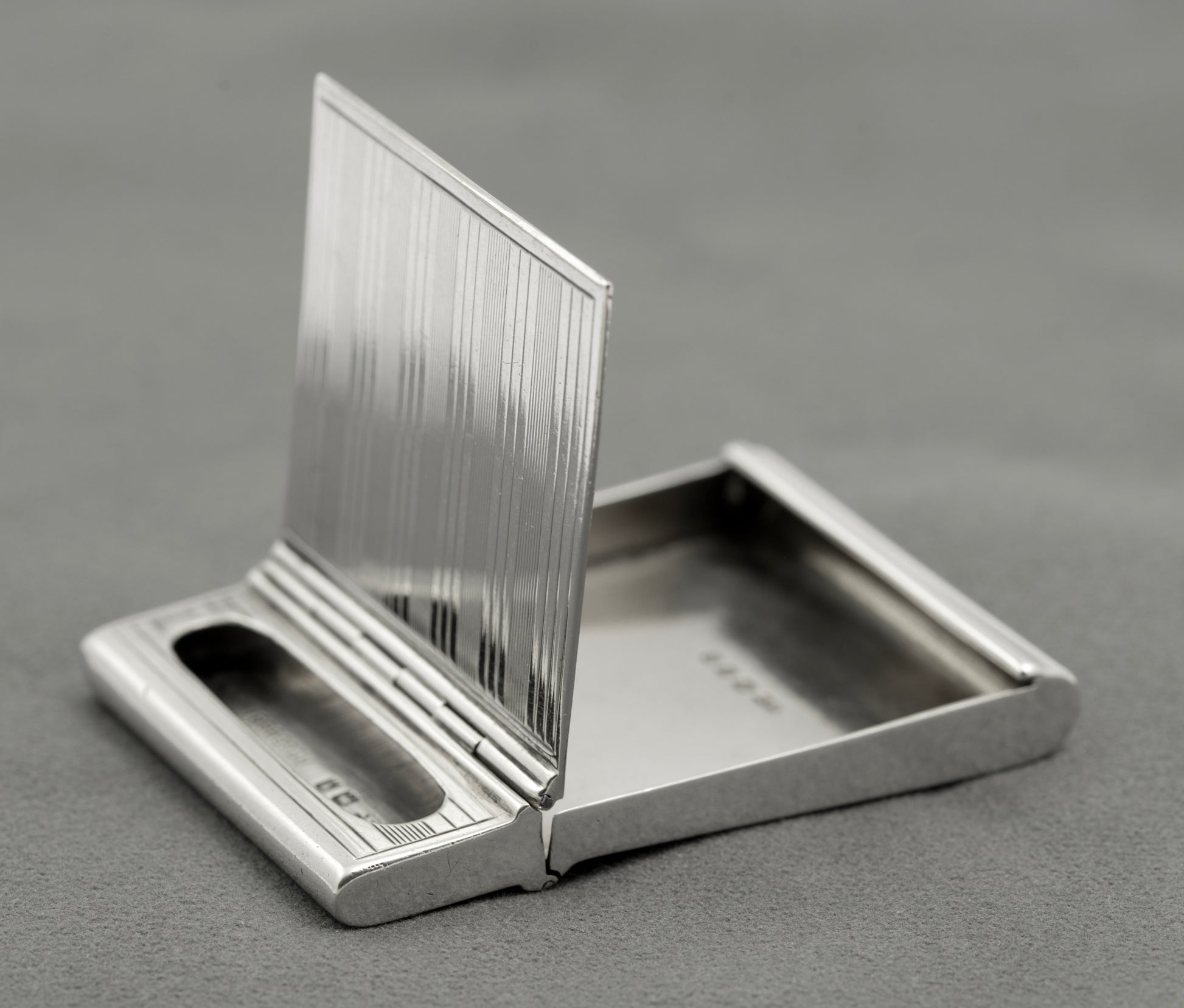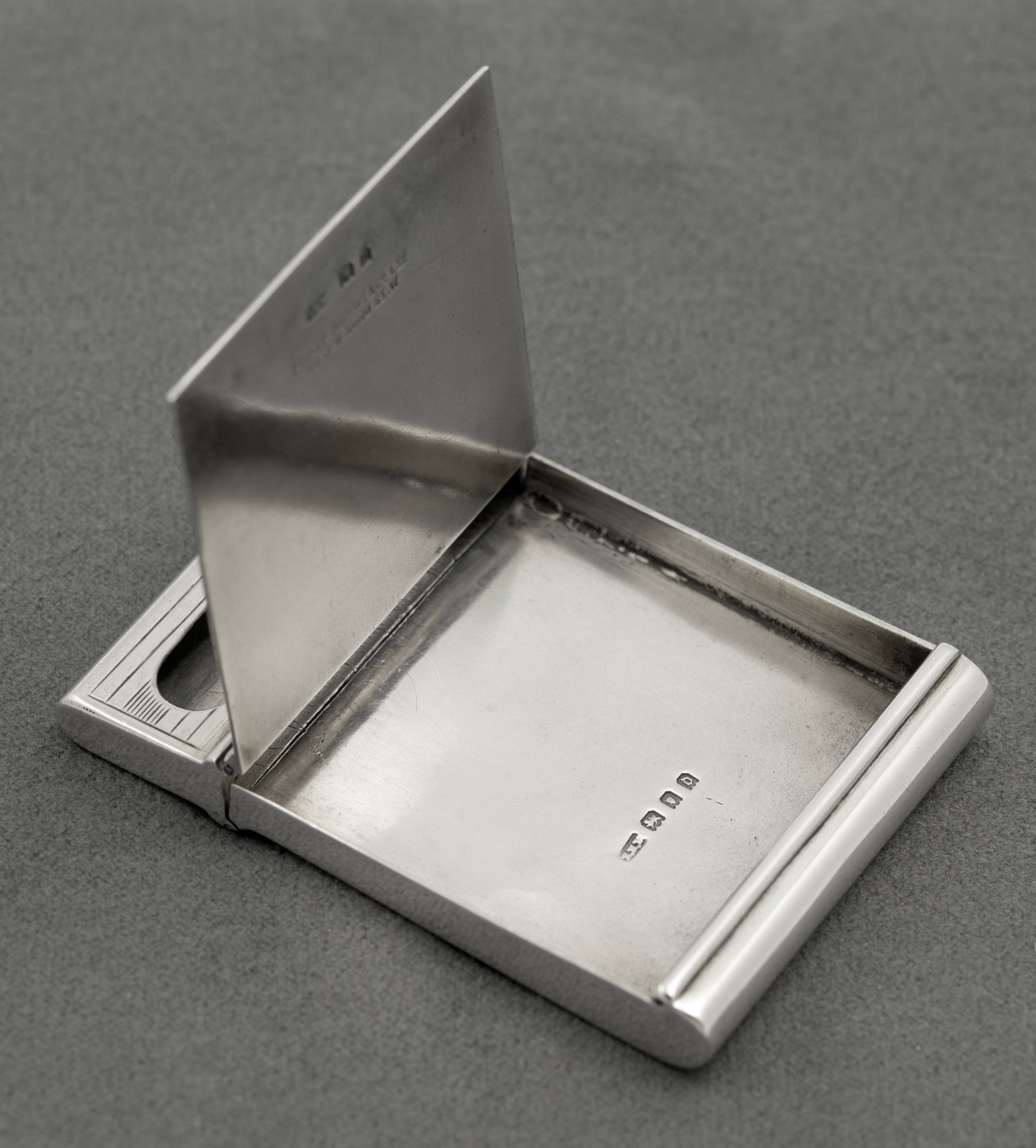 Some period wear with surface scratches and scuffs. A small knock to one top corner and some very shallow indents to the reverse. Hinge mechanism working fine and overall a very interesting piece.