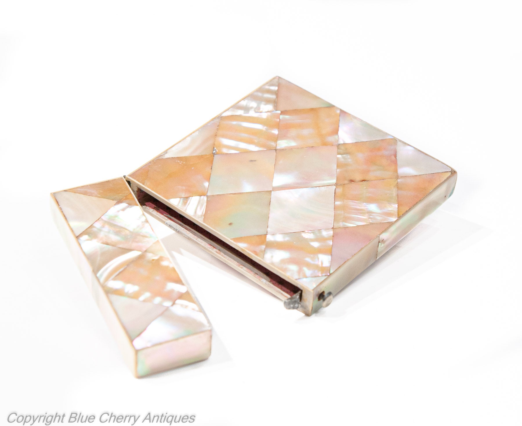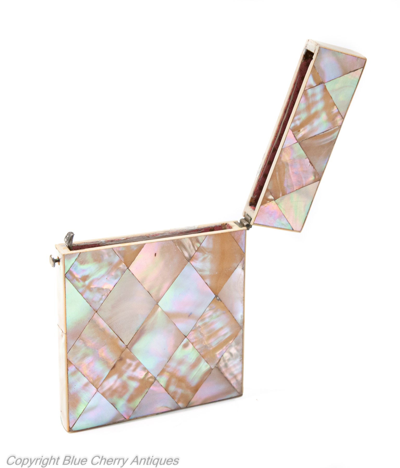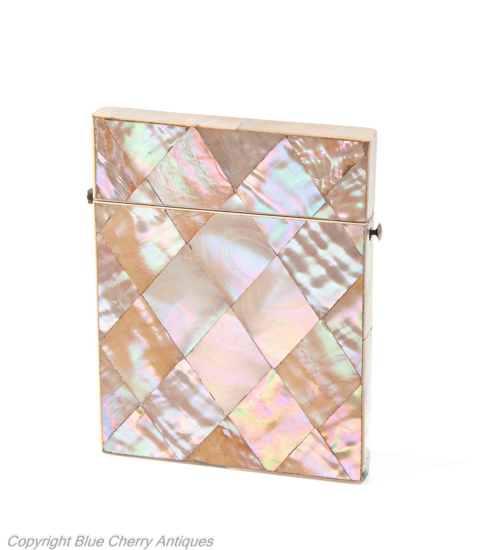 Antique Victorian Calling Card Case with Mother of Pearl Diamond Panels c1870 (Code 1926)