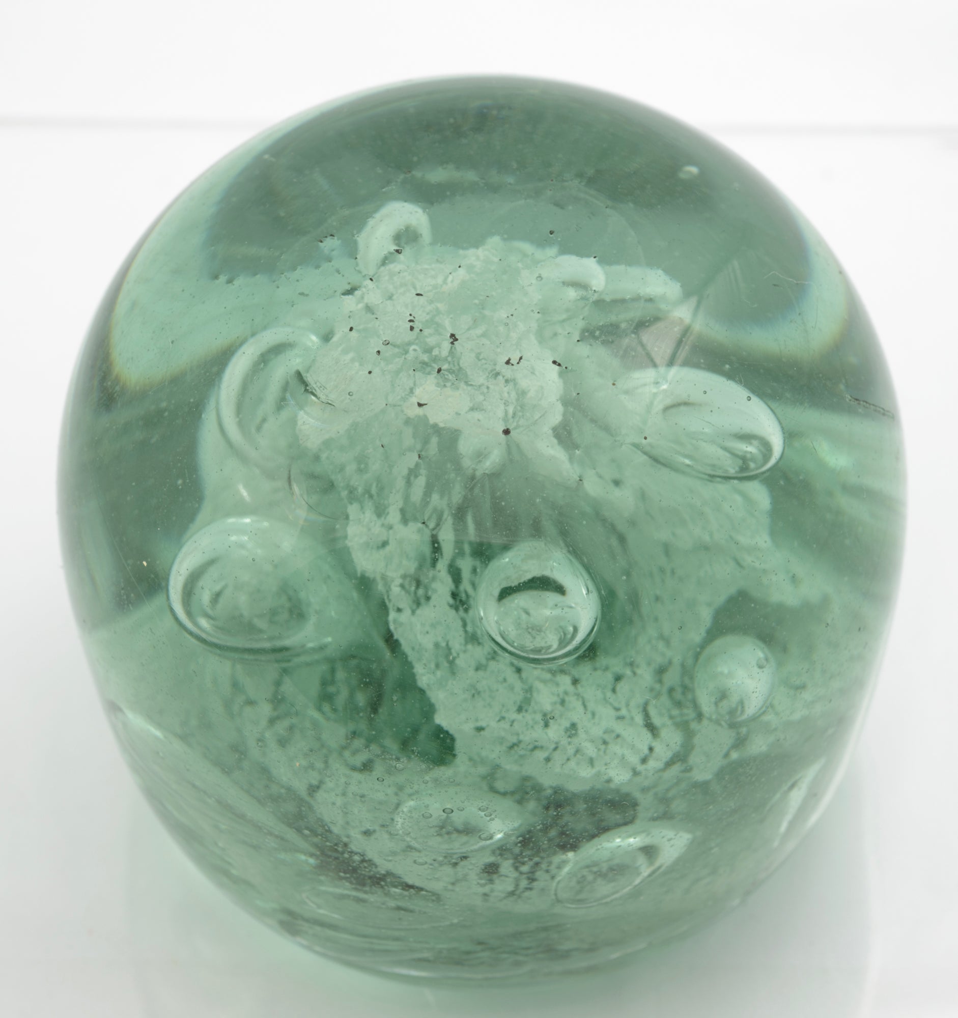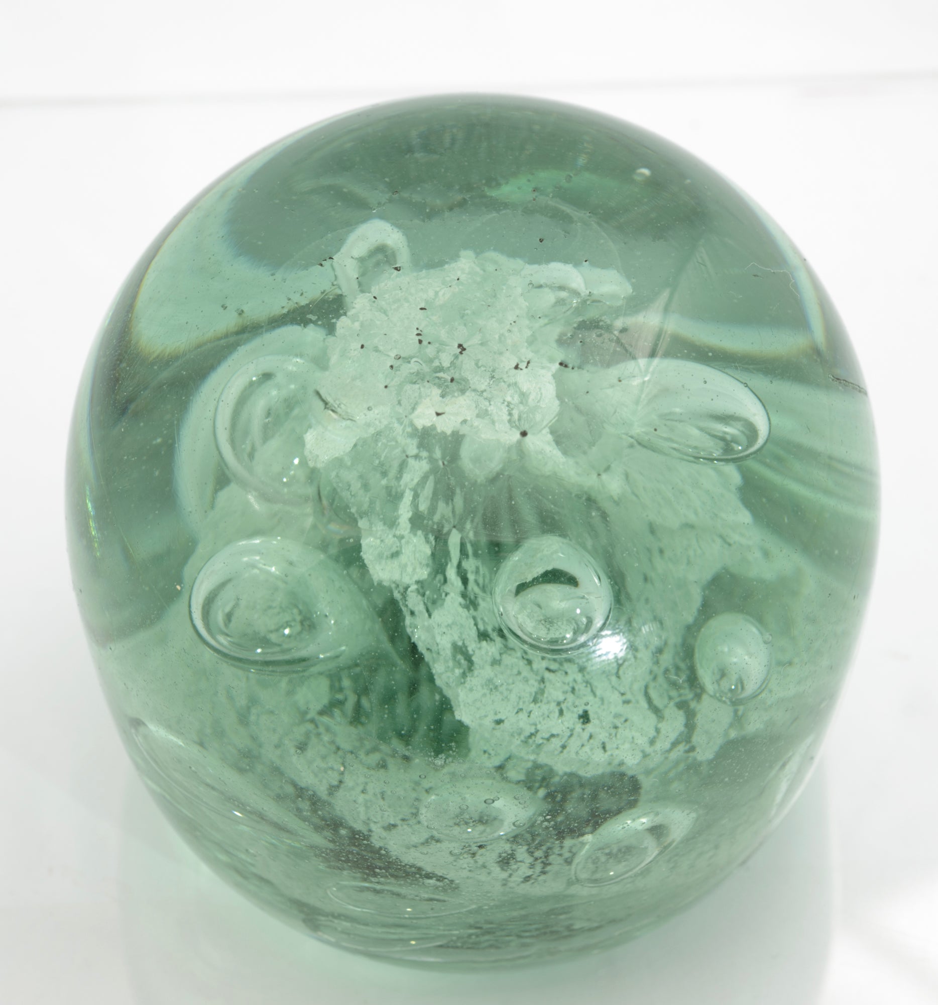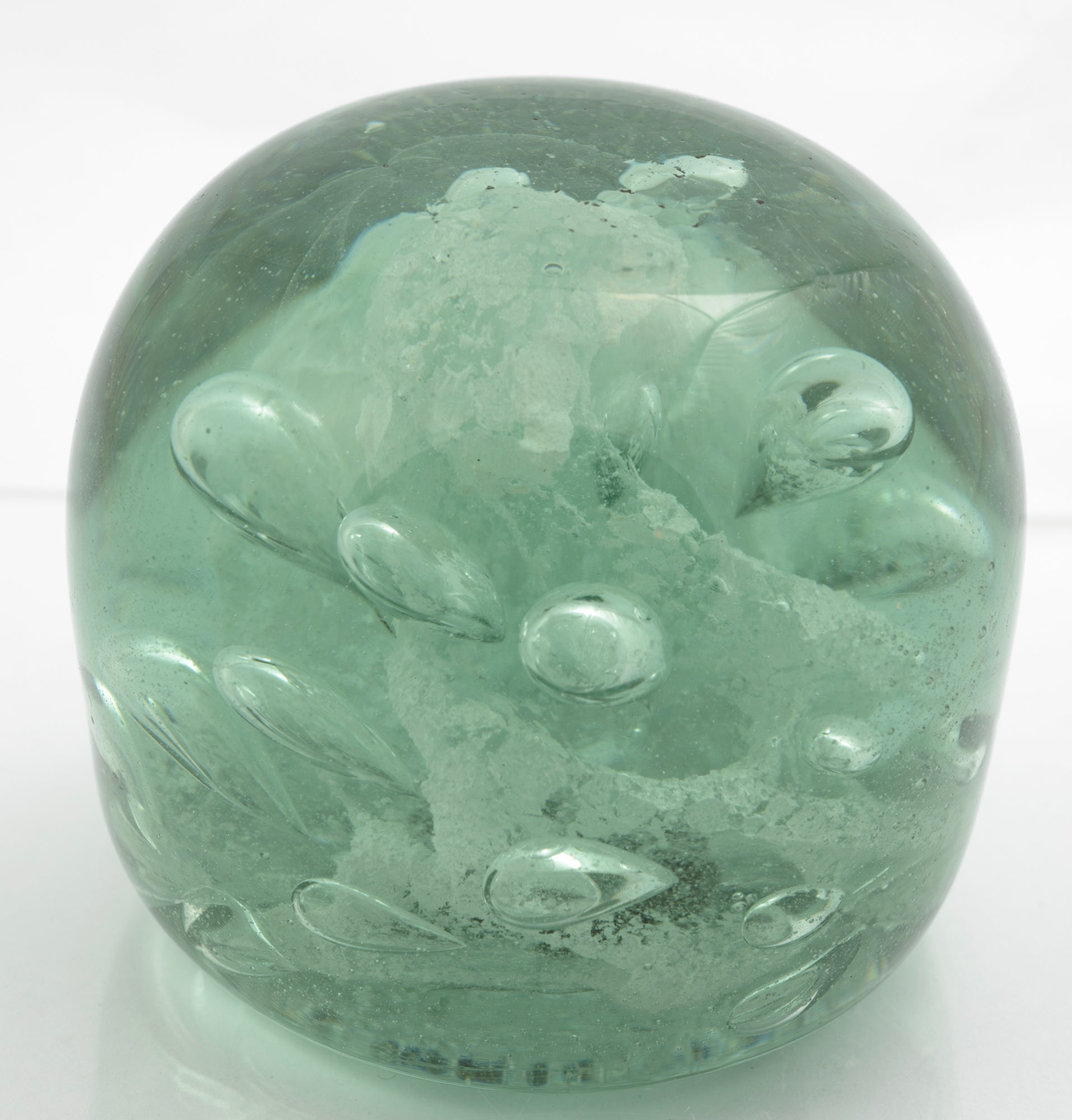 Antique Victorian Rare J Kilner Wakefield Green Glass Dump Bubble Paperweight (3322)