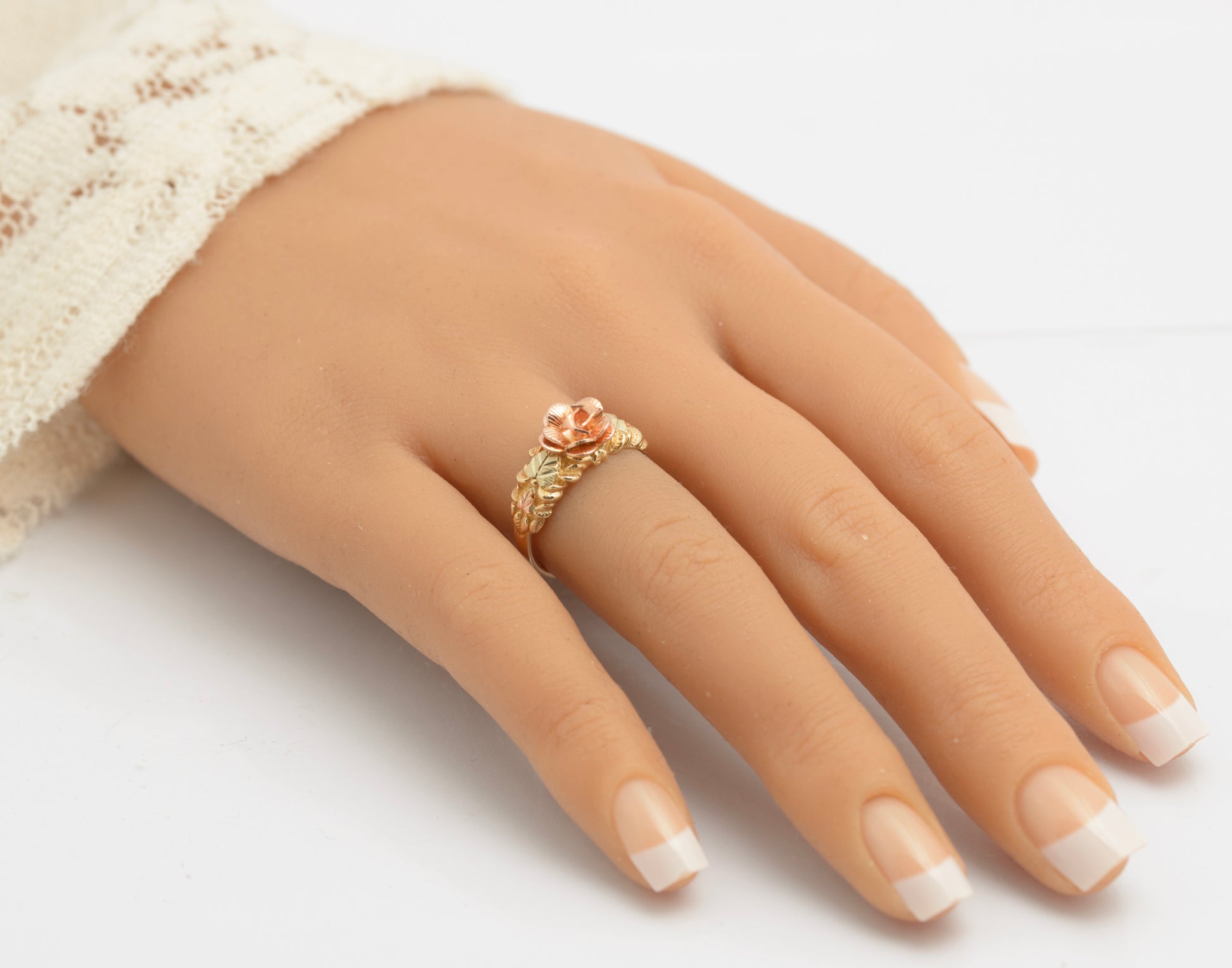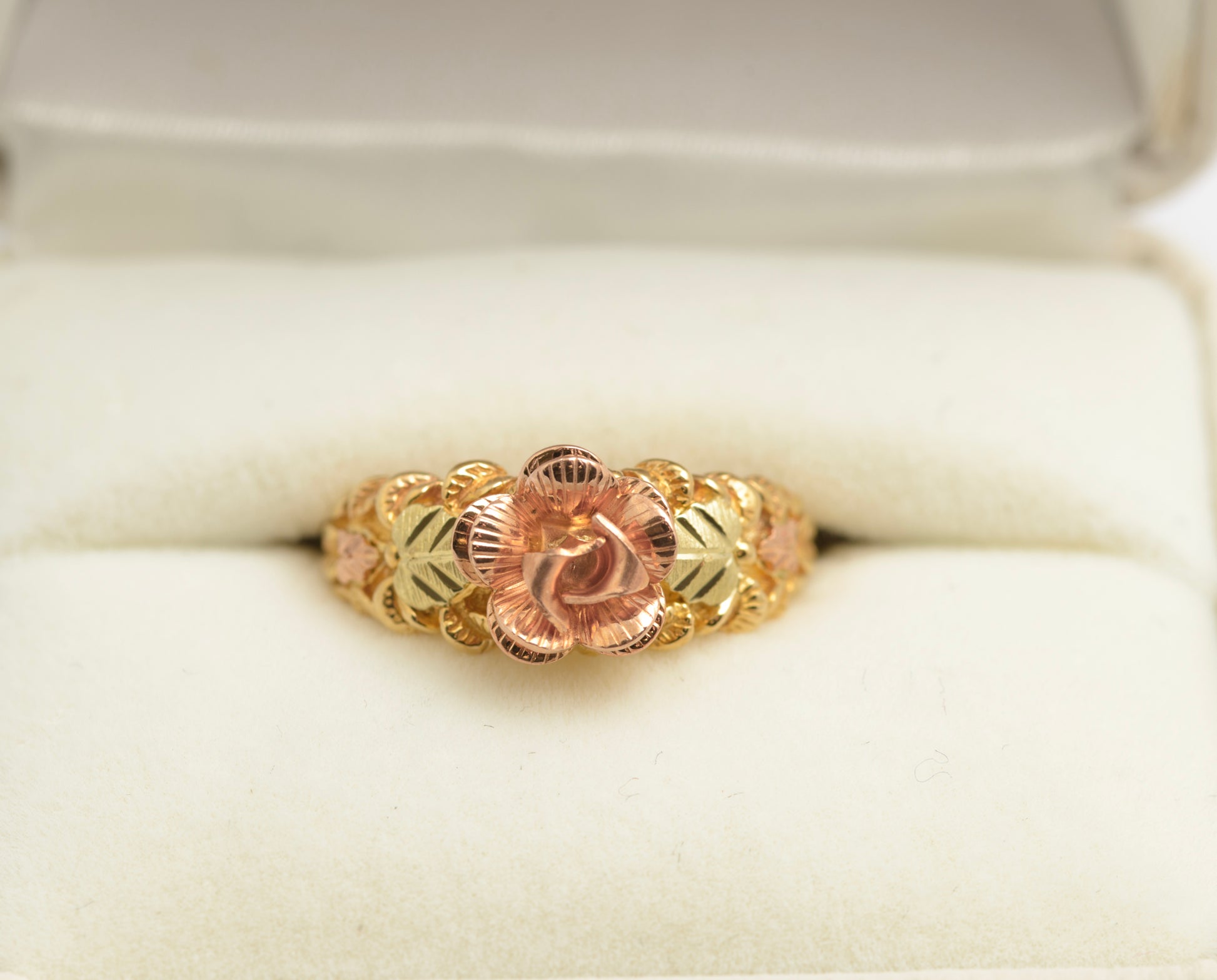 Black Hills 10K Tri Coloured Gold Ring Flower & Leaves Original Box/Certificate (C2675)