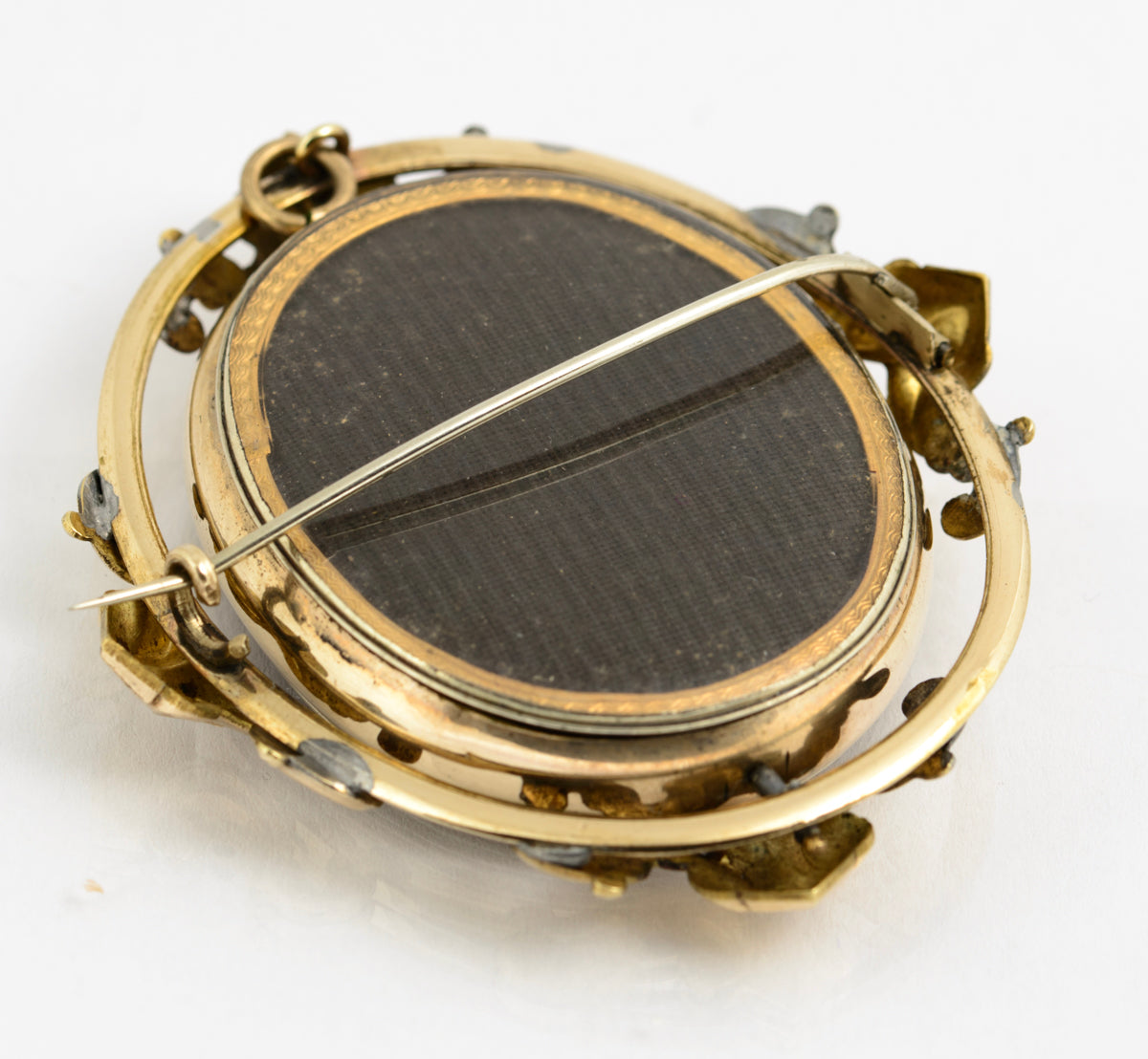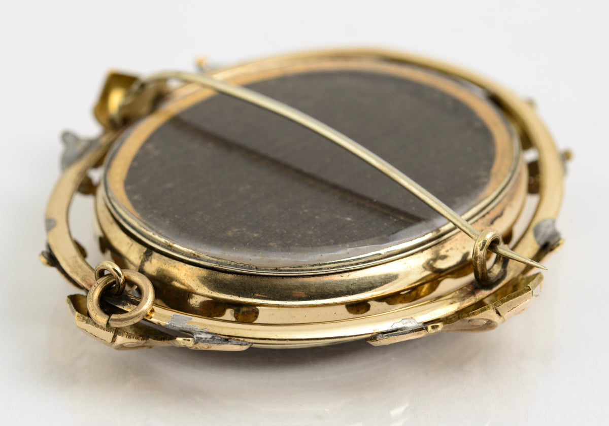Large Antique Victorian Hair Art Mourning Brooch/Pin Rotating Panel Gilt Metal (A2138)