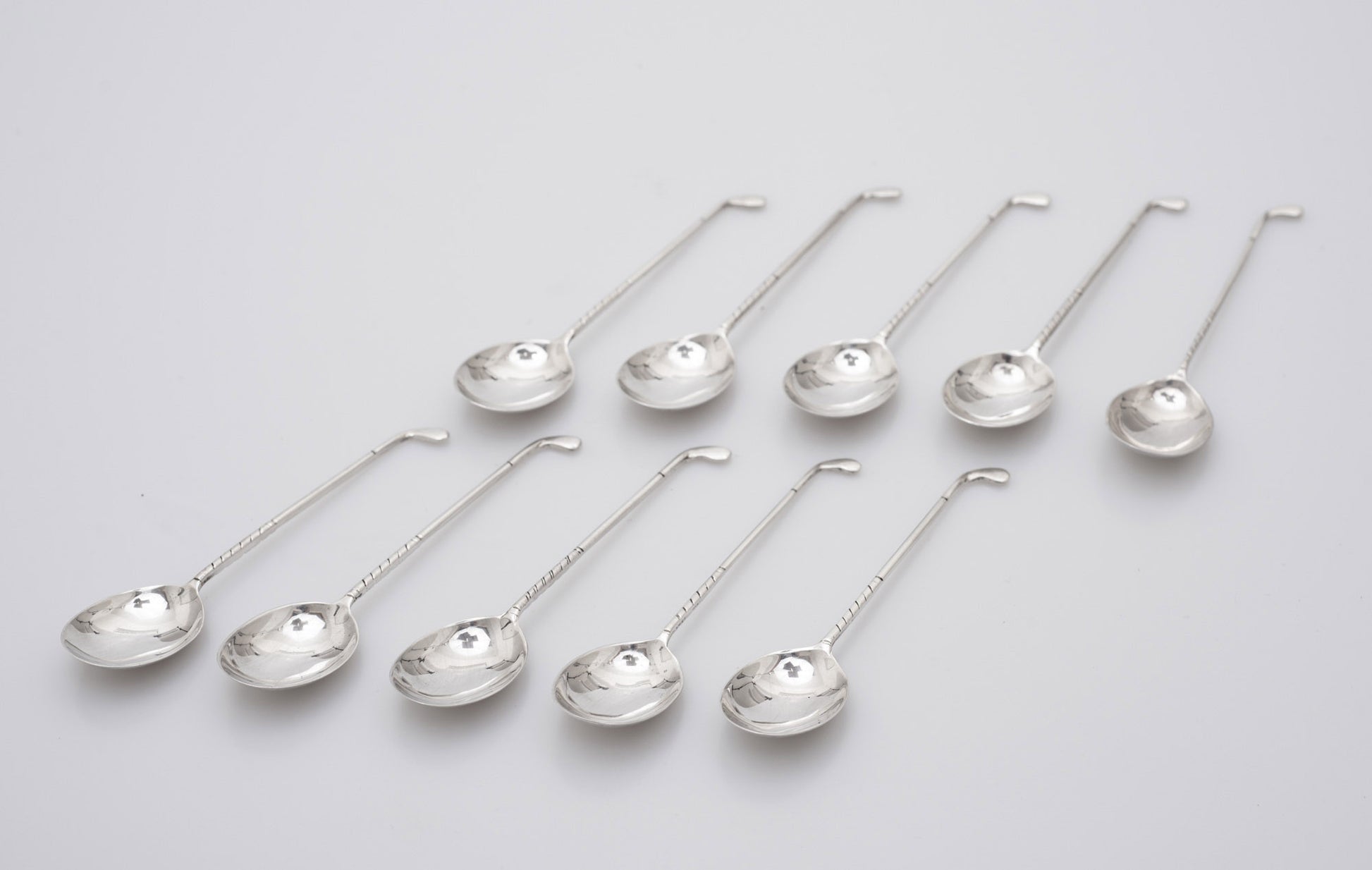 Set 10 Vintage Sterling Silver Coffee Spoons with Golf Club Golfing Handles (Code 2508)