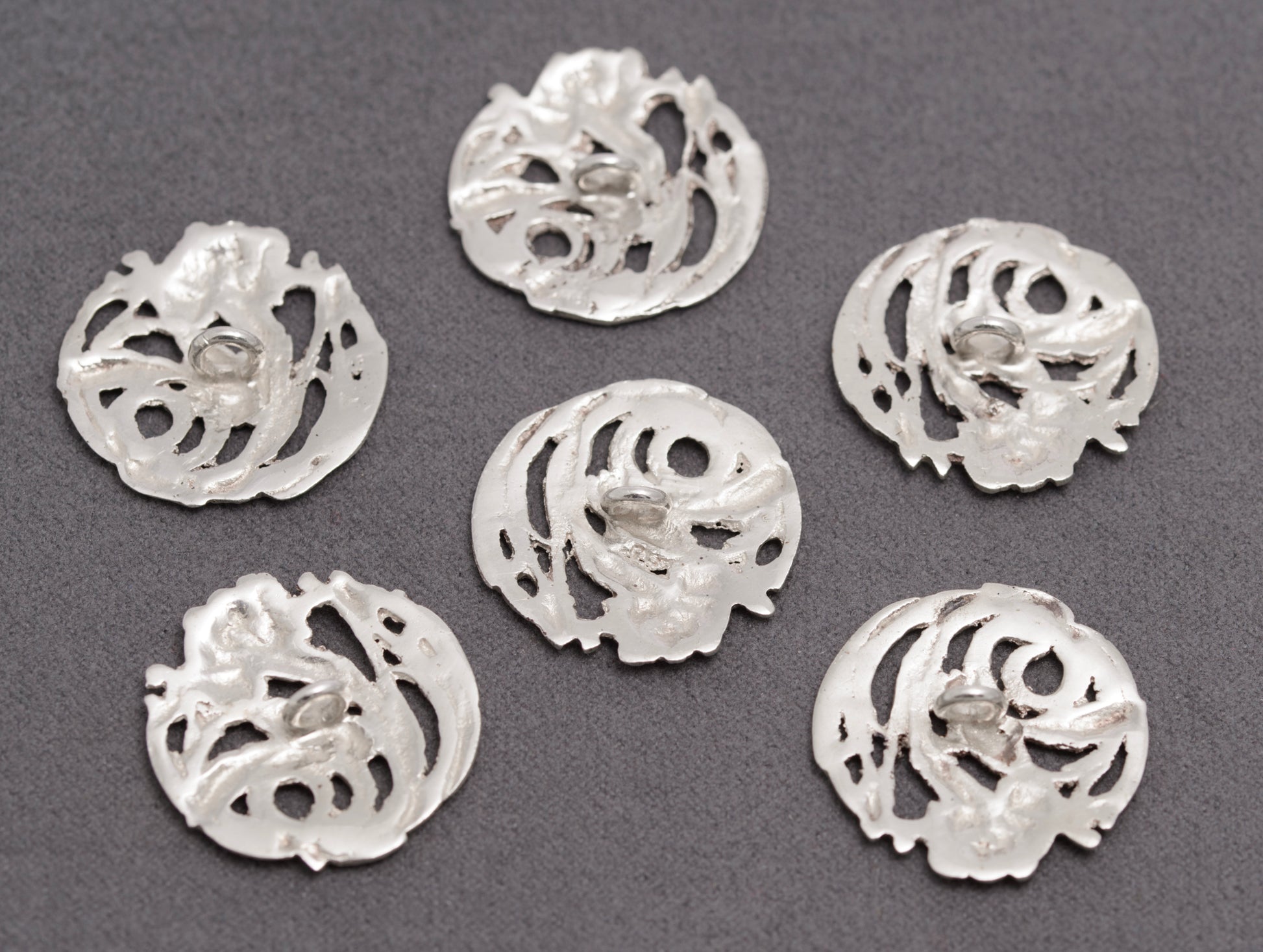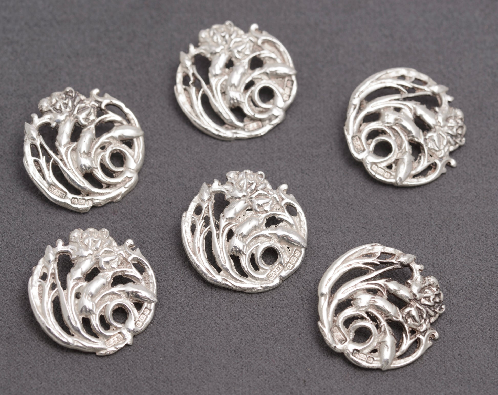 Set Of 6 Antique Art Nouveau Sterling Silver Buttons Hallmarked 1901 (C2830)