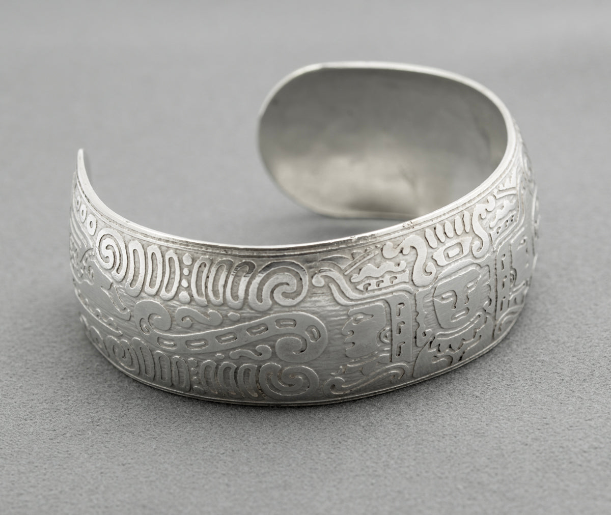 Vintage 925 Sterling Silver Bangle Bracelet Engraved Aztec Design (B2489)