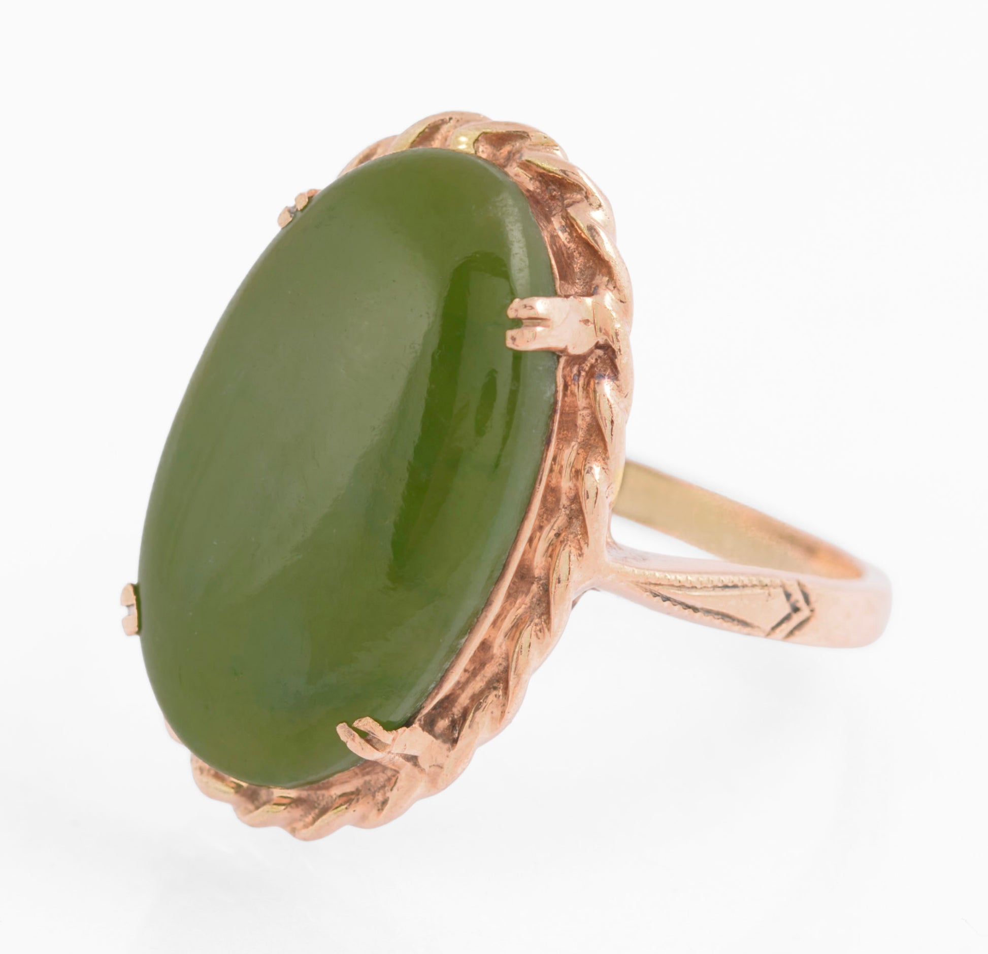 Vintage 9ct Rose Gold & Large 4 Carat Jade Cabochon Dress Ring Size L (C2771)