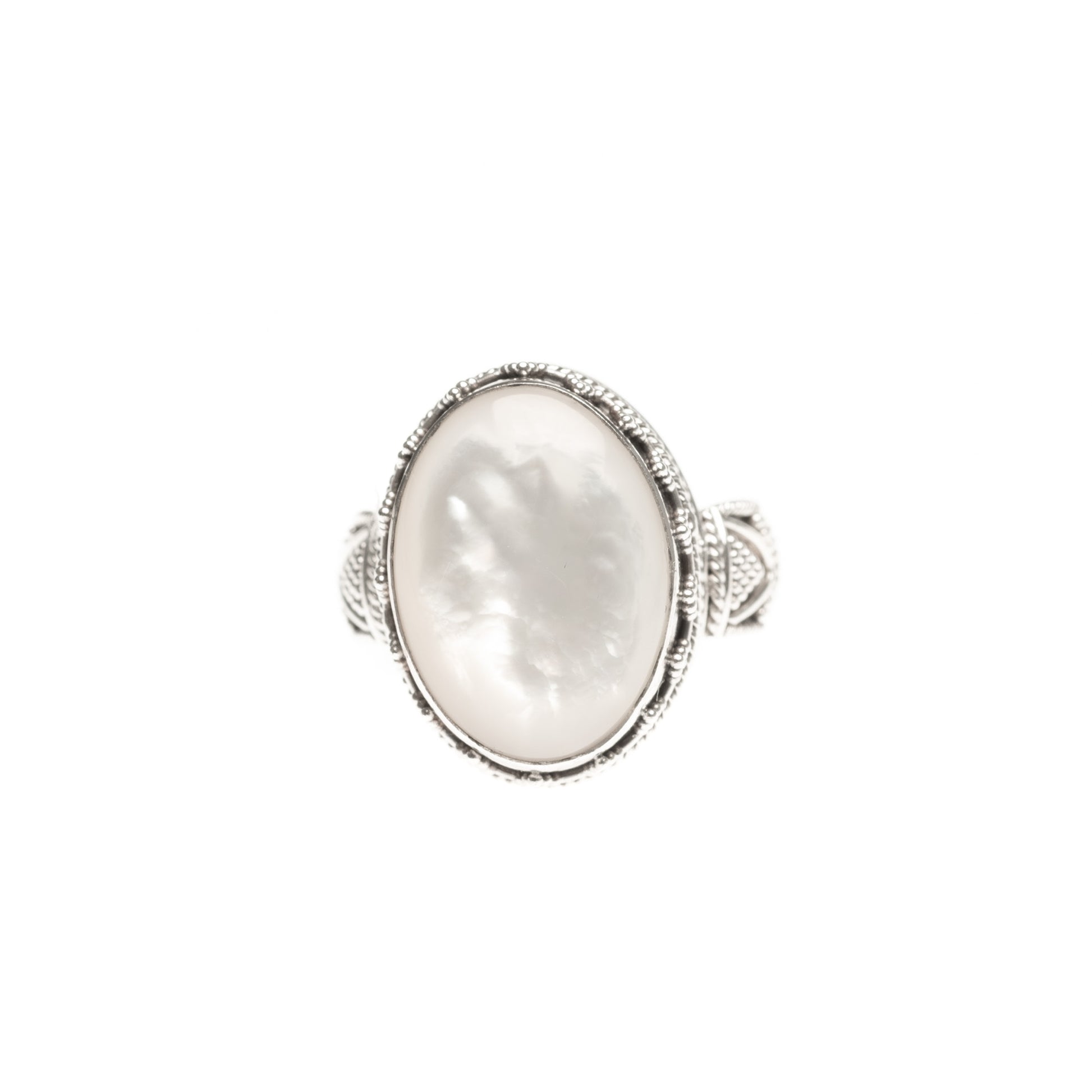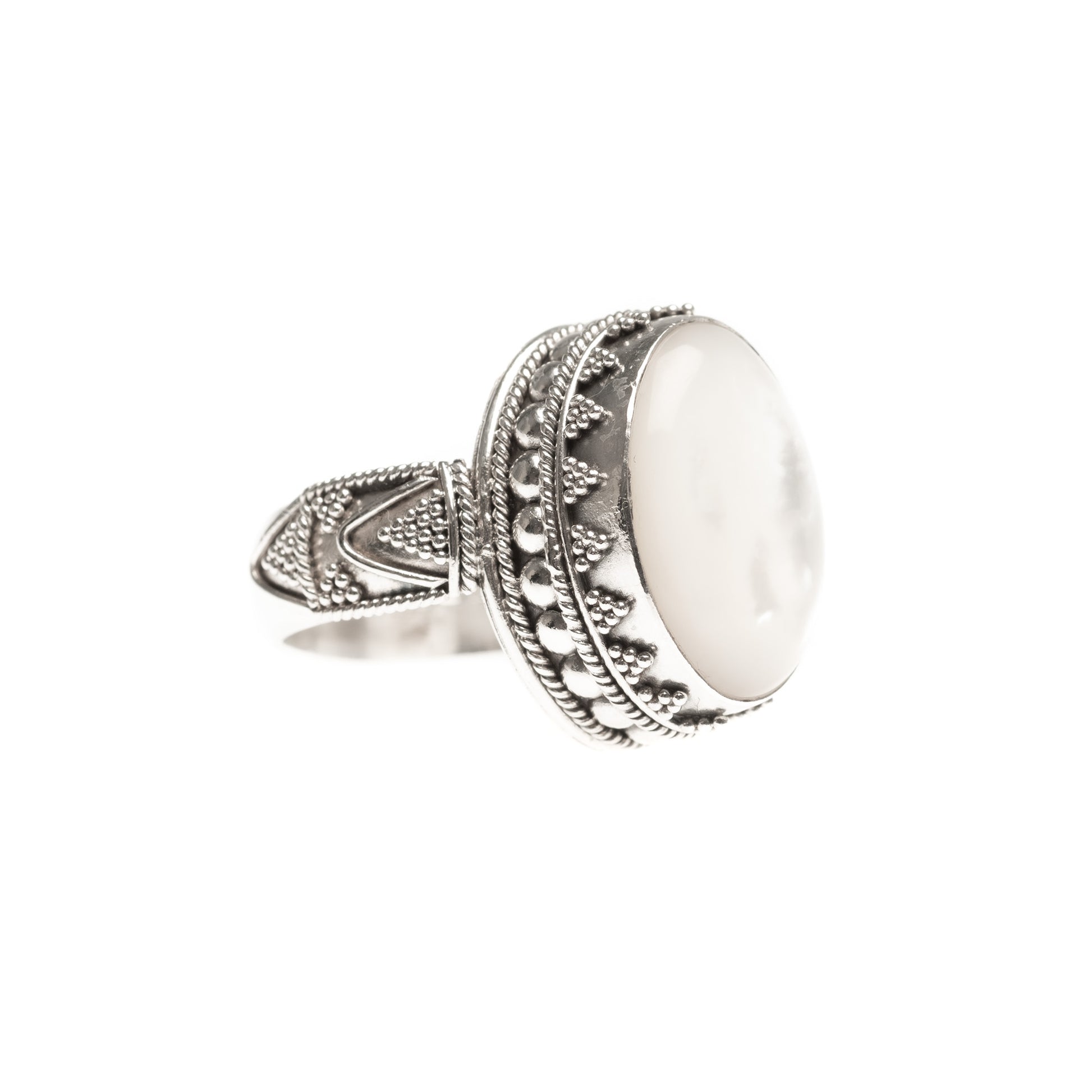 Vintage BA Suarti Silver Statement Ring With Mother Of Pearl Cabochon Size N (Code A414)