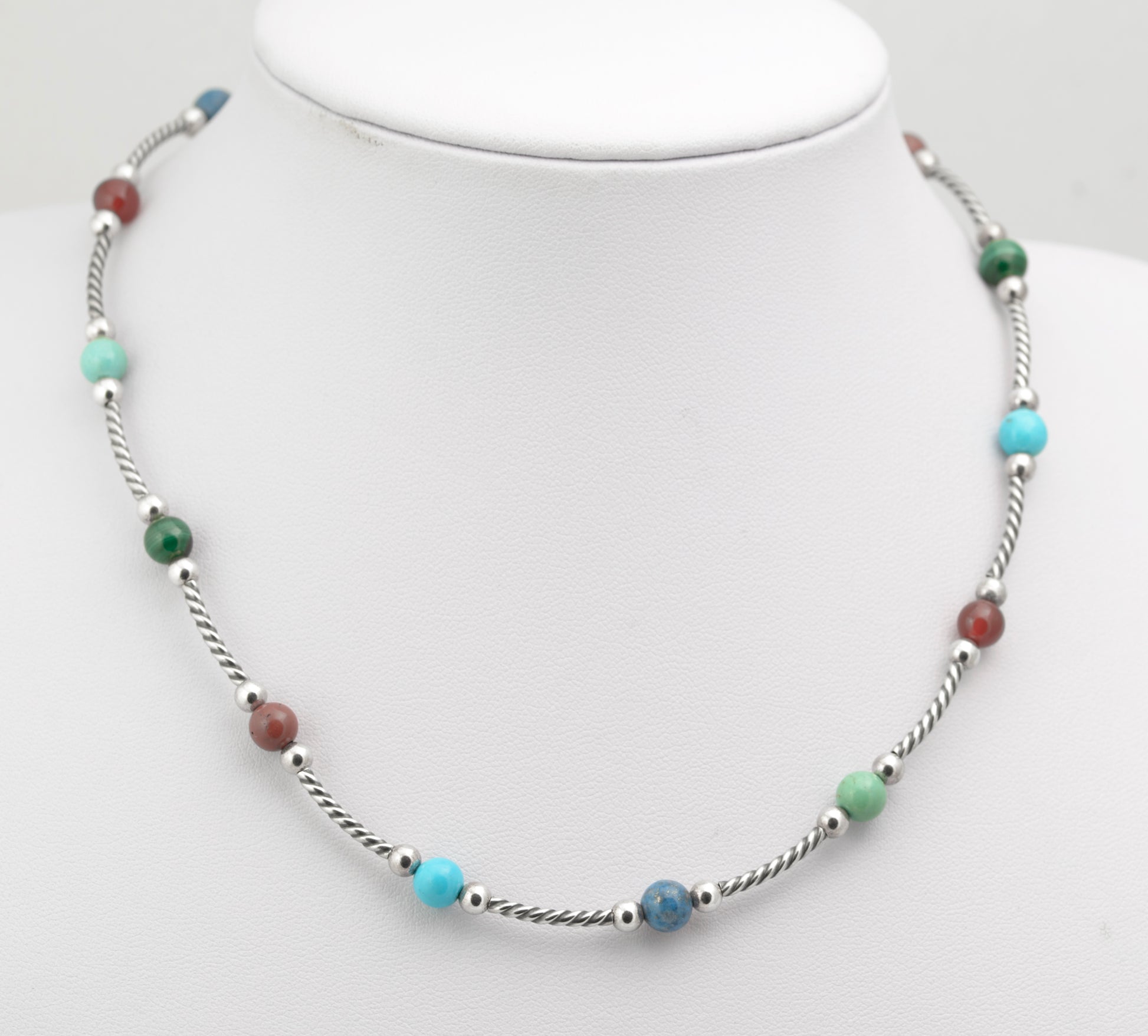 Vintage Carolyn Pollack Sterling Silver & Semi Precious Bead Necklace (B2637)