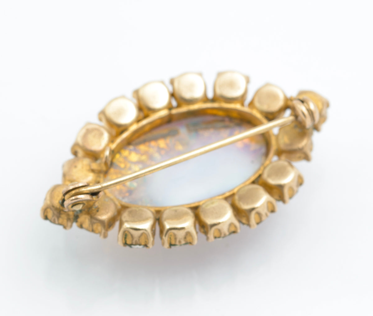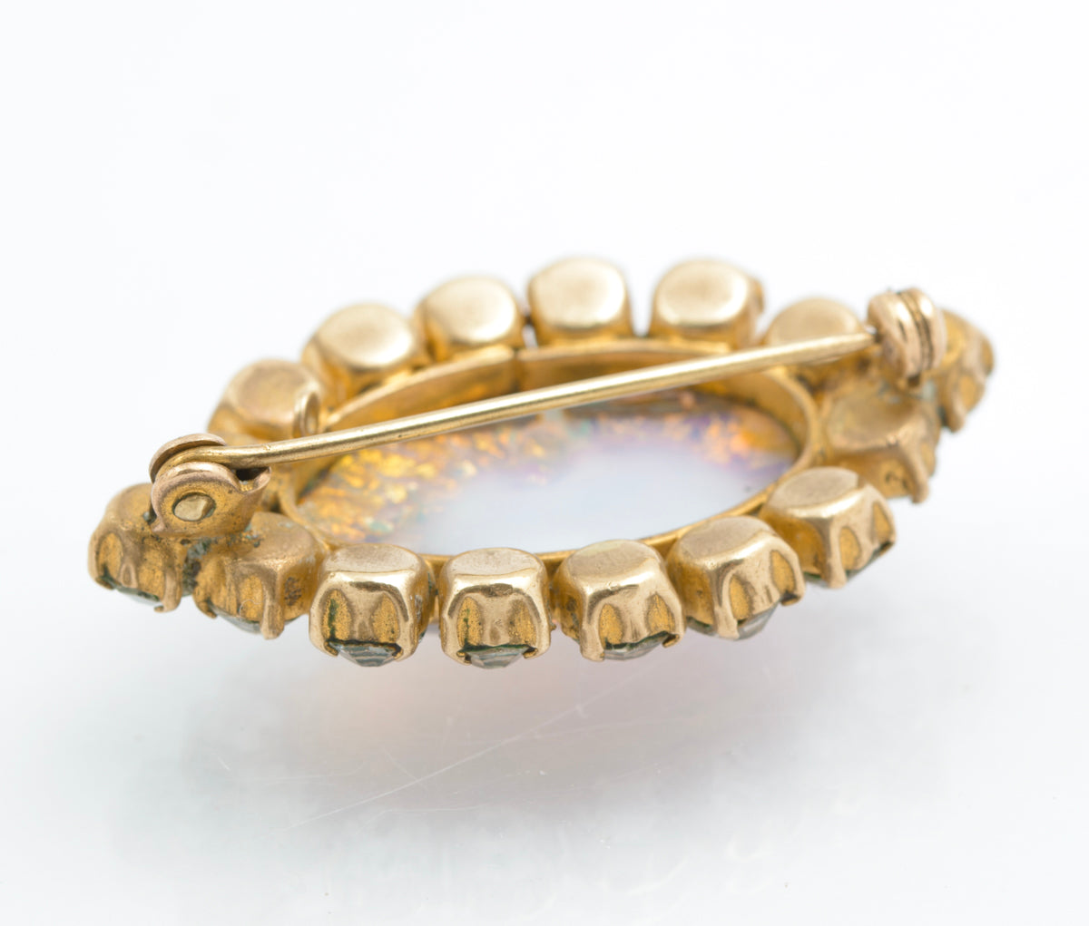 Vintage Czech Art Deco Dragons Eye Brooch Pin With Dragons Breath Opal (B2479)