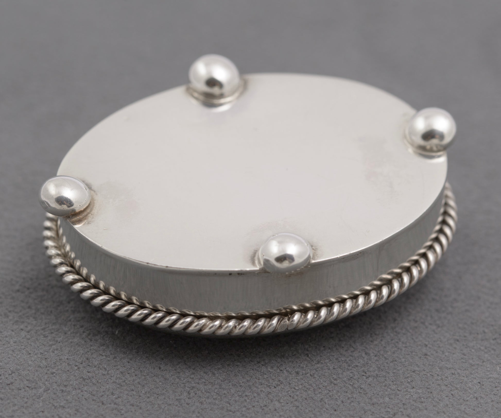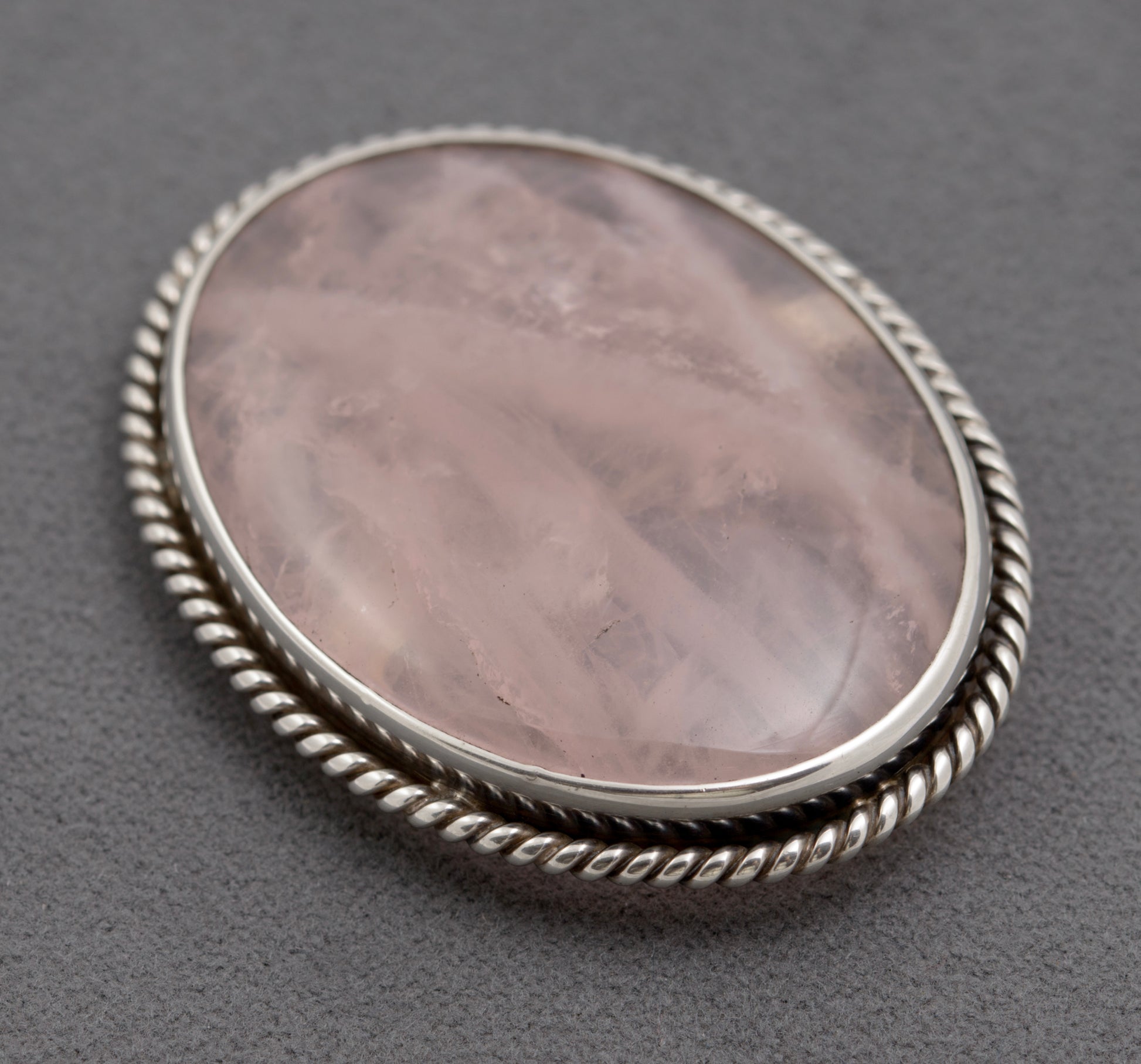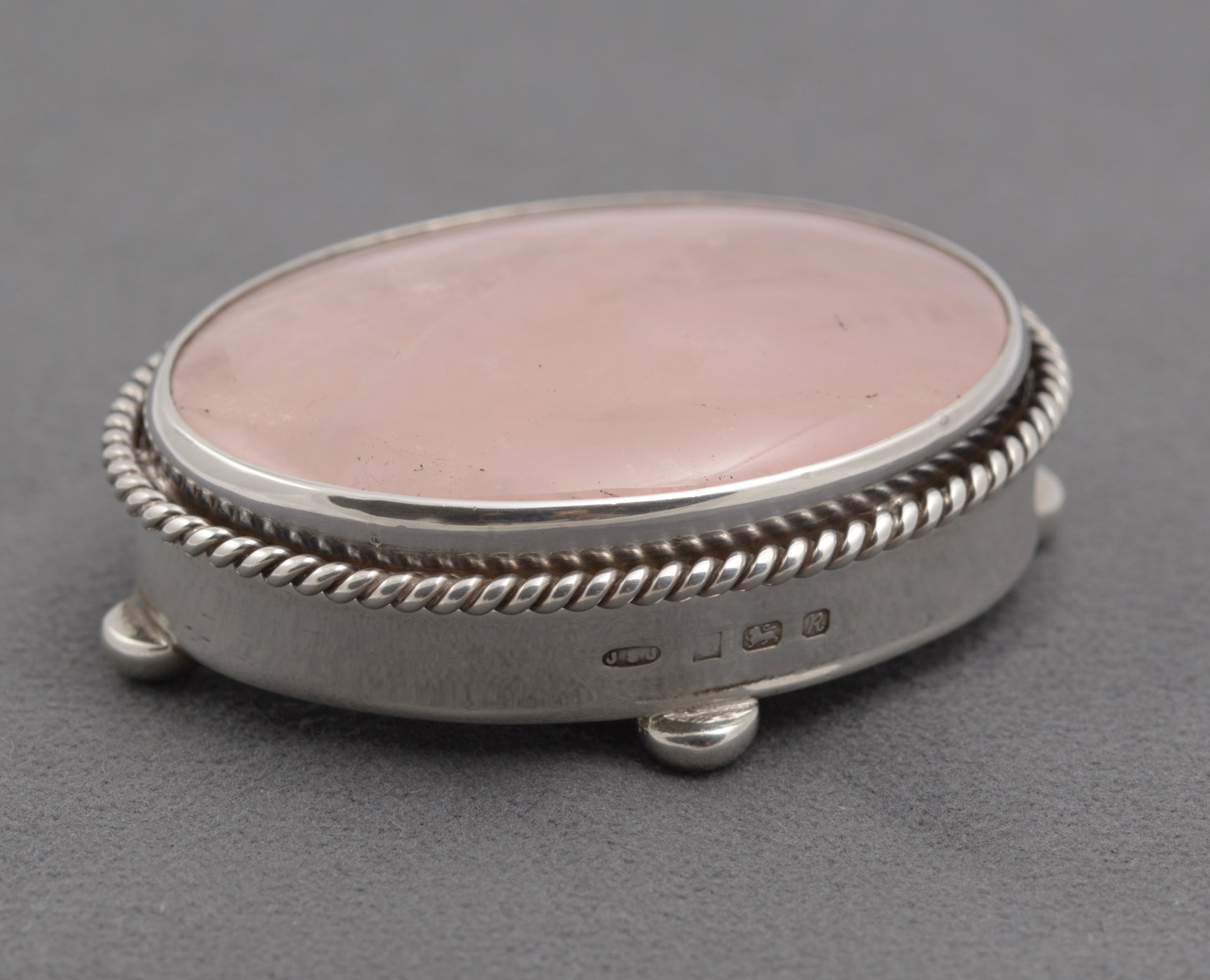 Vintage Sterling Silver Combination Pill Box & Rose Quartz Crystal Brooch (B2515)