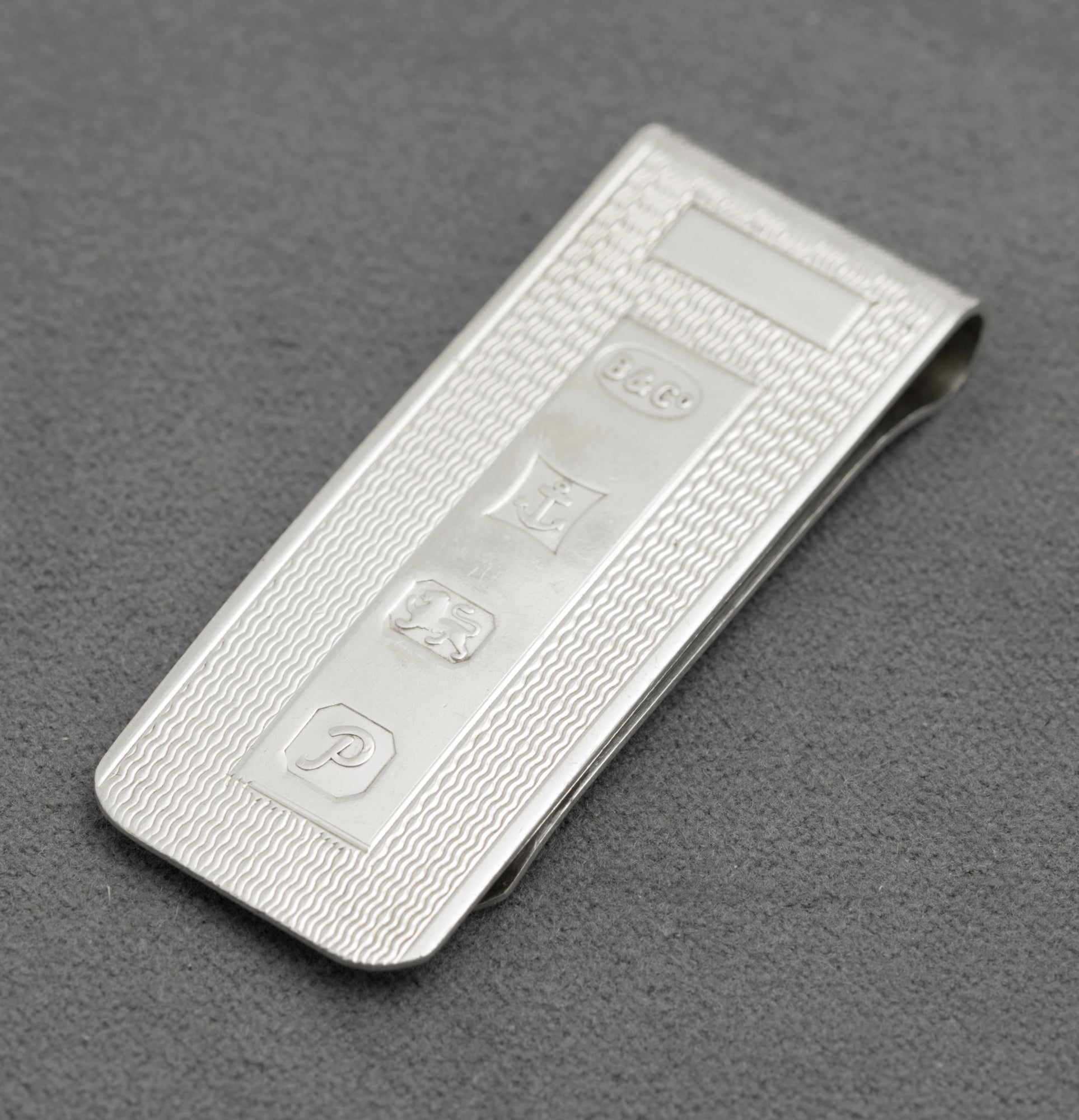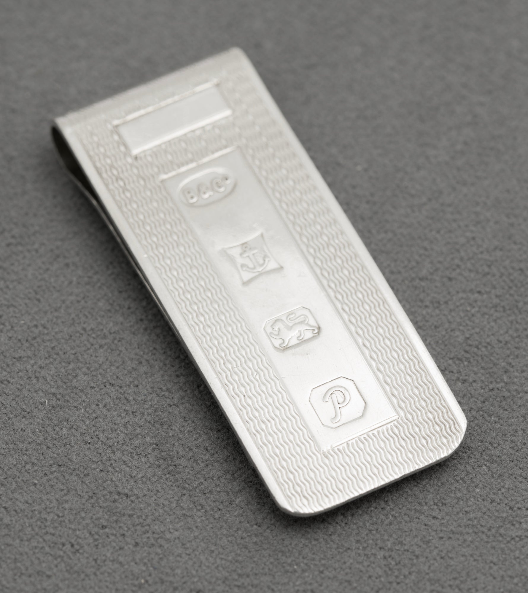 Vintage Sterling Silver Feature Hallmarked Money Clip Engine Turned Design (B2531)
