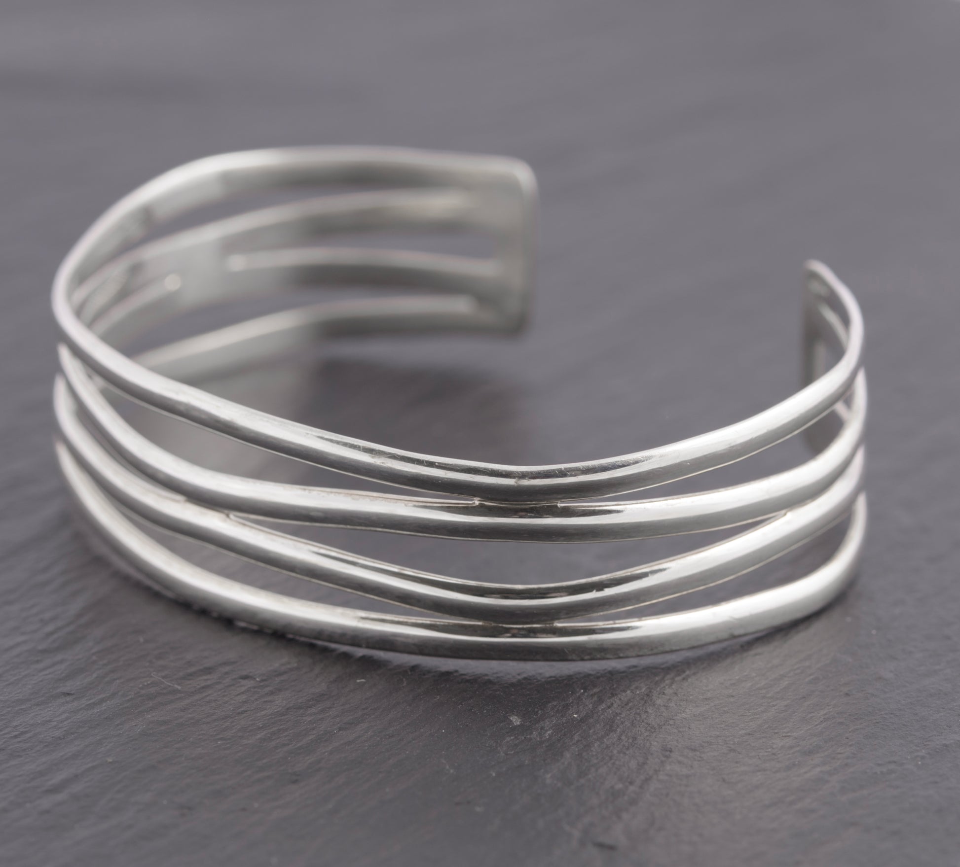Vintage Sterling Silver Handmade Mexican Wave Form Bangle Bracelet (C2746)