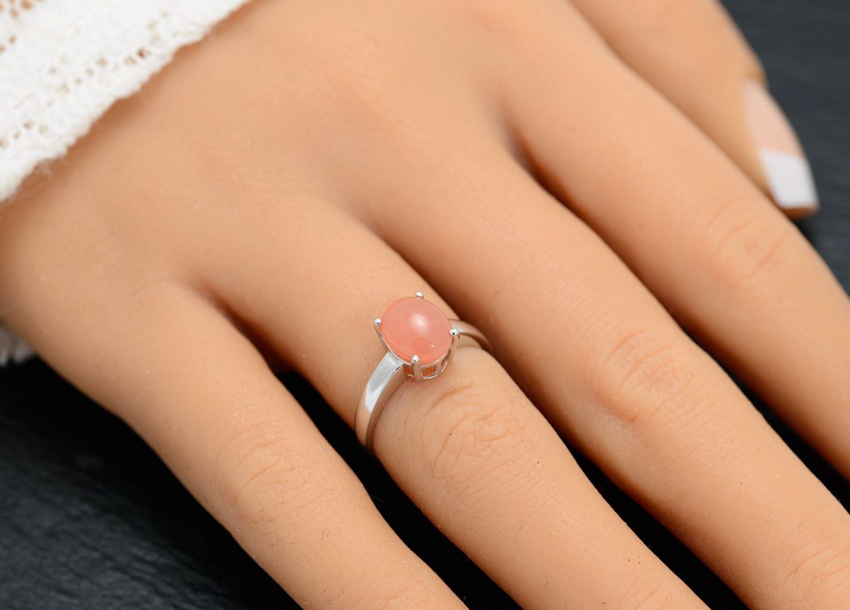 White Gold Solitaire Ring With Peach Moonstone Cabochon Birmingham 2005 QVC (A1573)